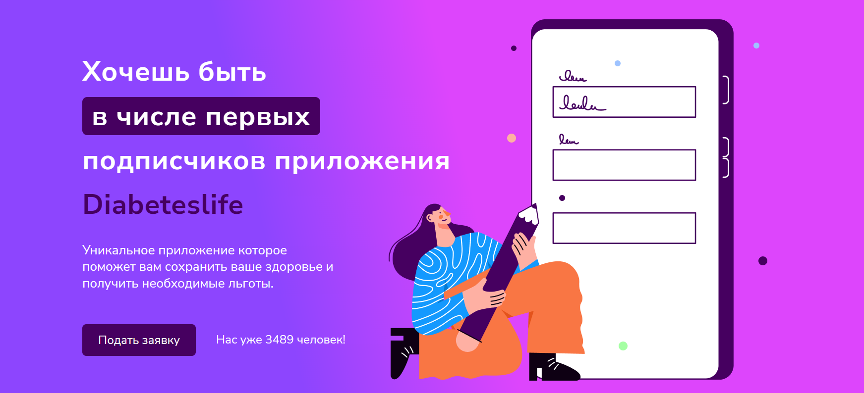 "Diabeteslife" - это цифровой помощник, который ежедневно помогает выстраивать полноценную жизнь людям, страдающим диабетом, и минимизировать побочные последствия от болезни. Данное приложение включает в себя ДИА-дневник, чек-листы, маршрутный лист по ведению здорового образа жизни, практическую школу диабета и push-уведомления.
